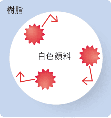 白色顔料ラジカルが発生しにくく、ラジカルが発生した場合にもシールド層がラジカル放出を防ぐため、樹脂の破壊を抑える。